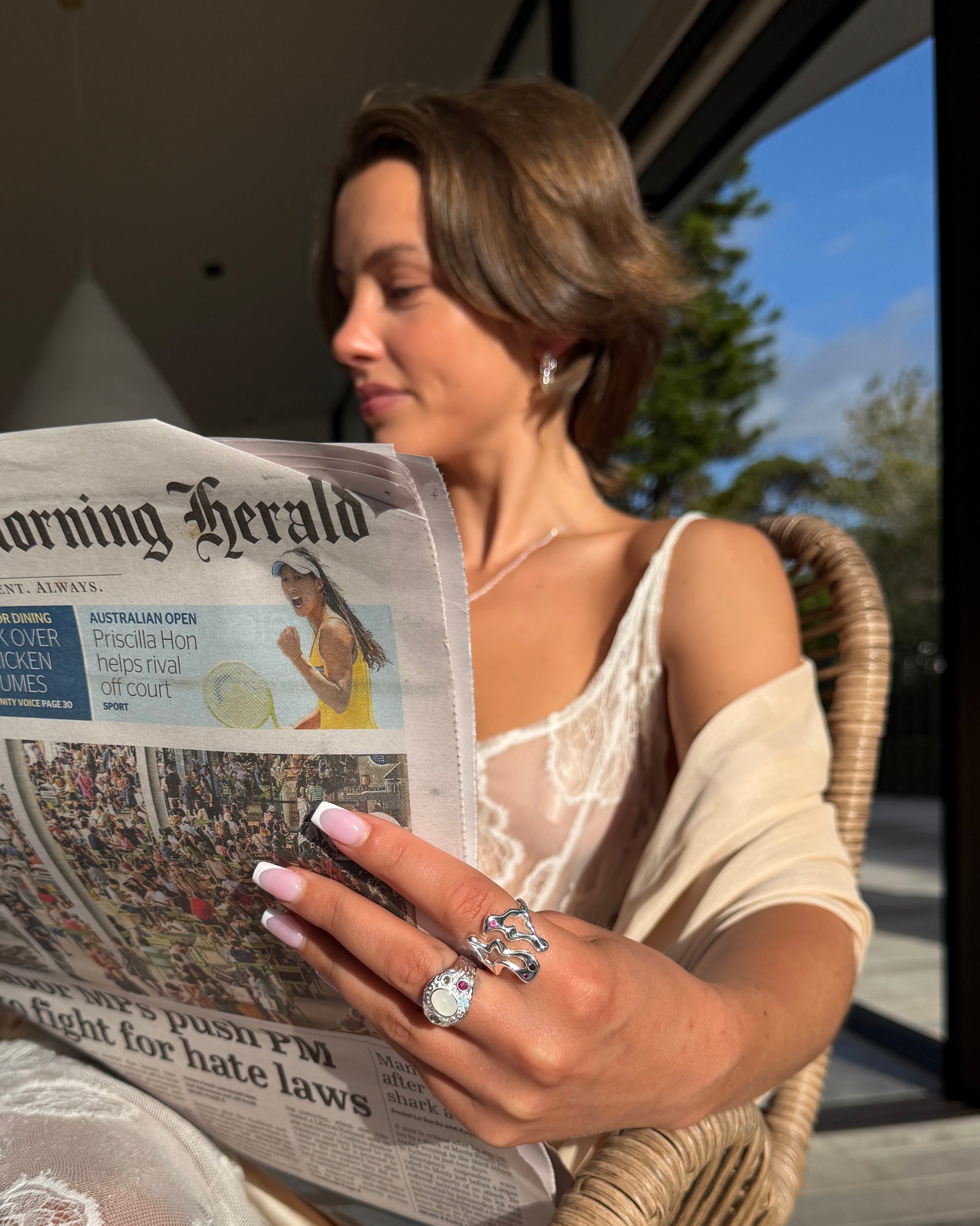 Although our jewellery is 18kt Gold Plated or 925 Sterling Silver, it is important to note that the gold will wear away over time, especially on rings worn everyday that rub together or against your fingers. To preserve the plating for as long as possible, take rings off whilst showering, sleeping or strenuous exercise.