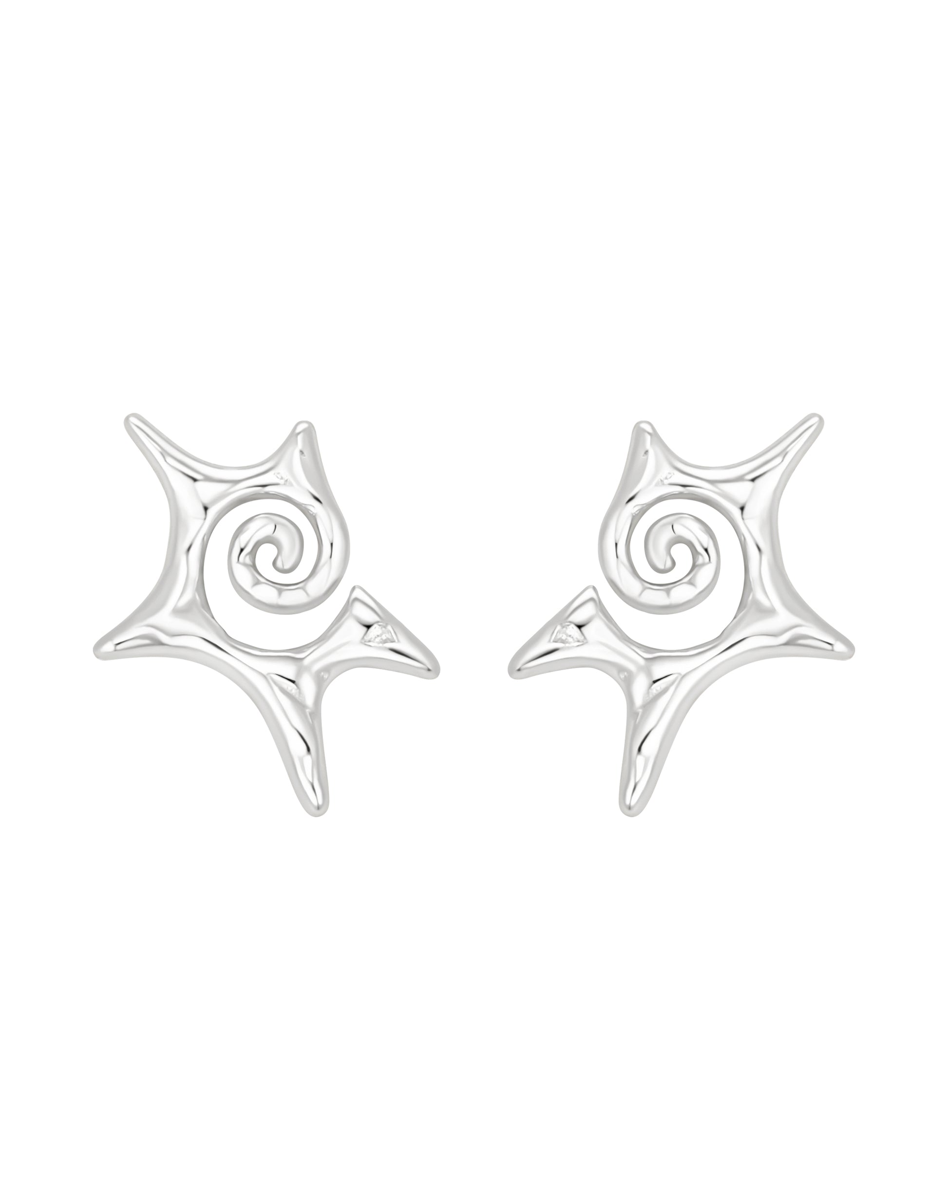 These 925 sterling silver earrings feature an abstract spiral silhouette inspired by organic form and fluid movement. Polished to a mirror-like shine, their sculptural shape delivers bold impact while remaining lightweight and effortless to wear — the perfect balance of statement and sophistication.